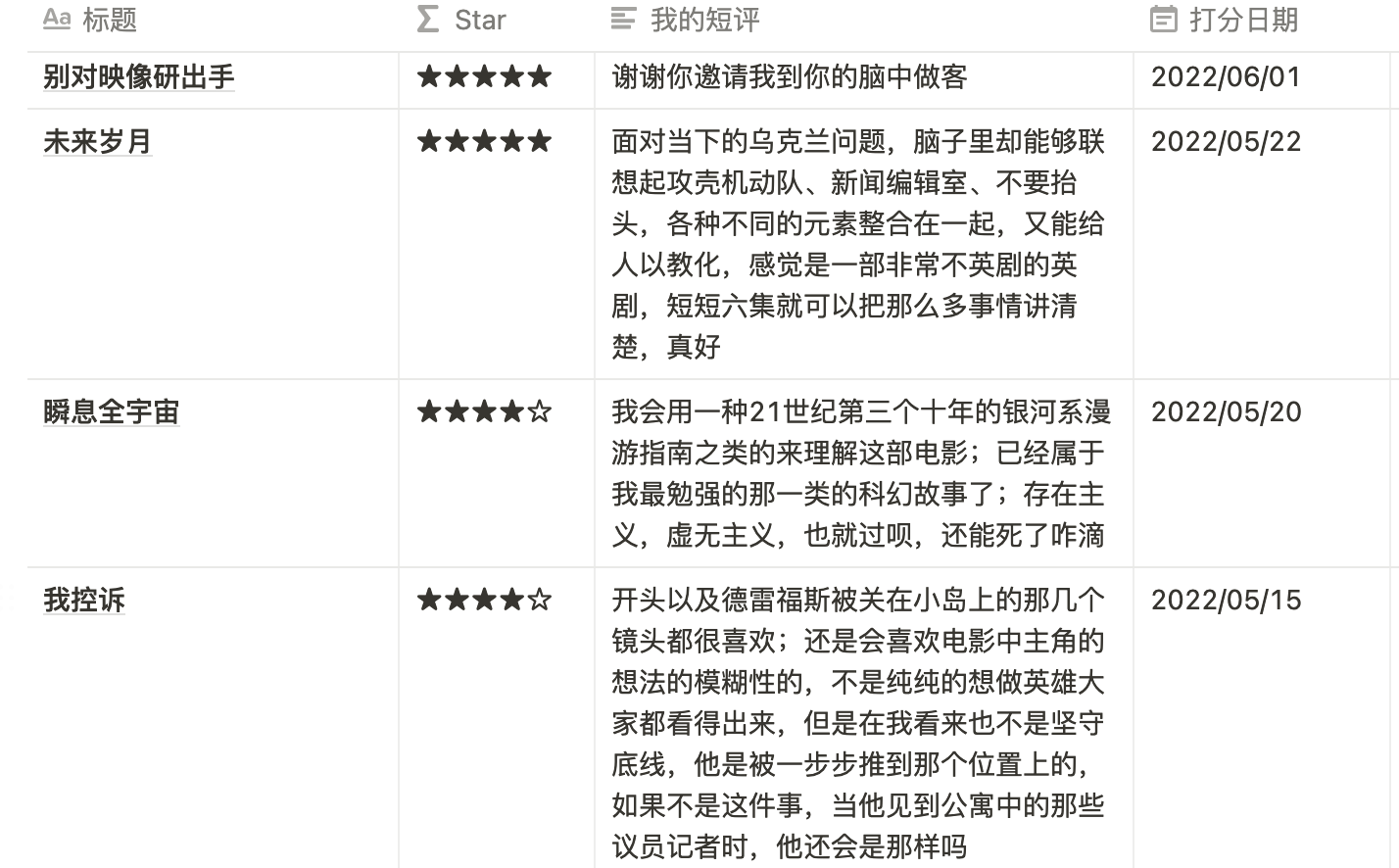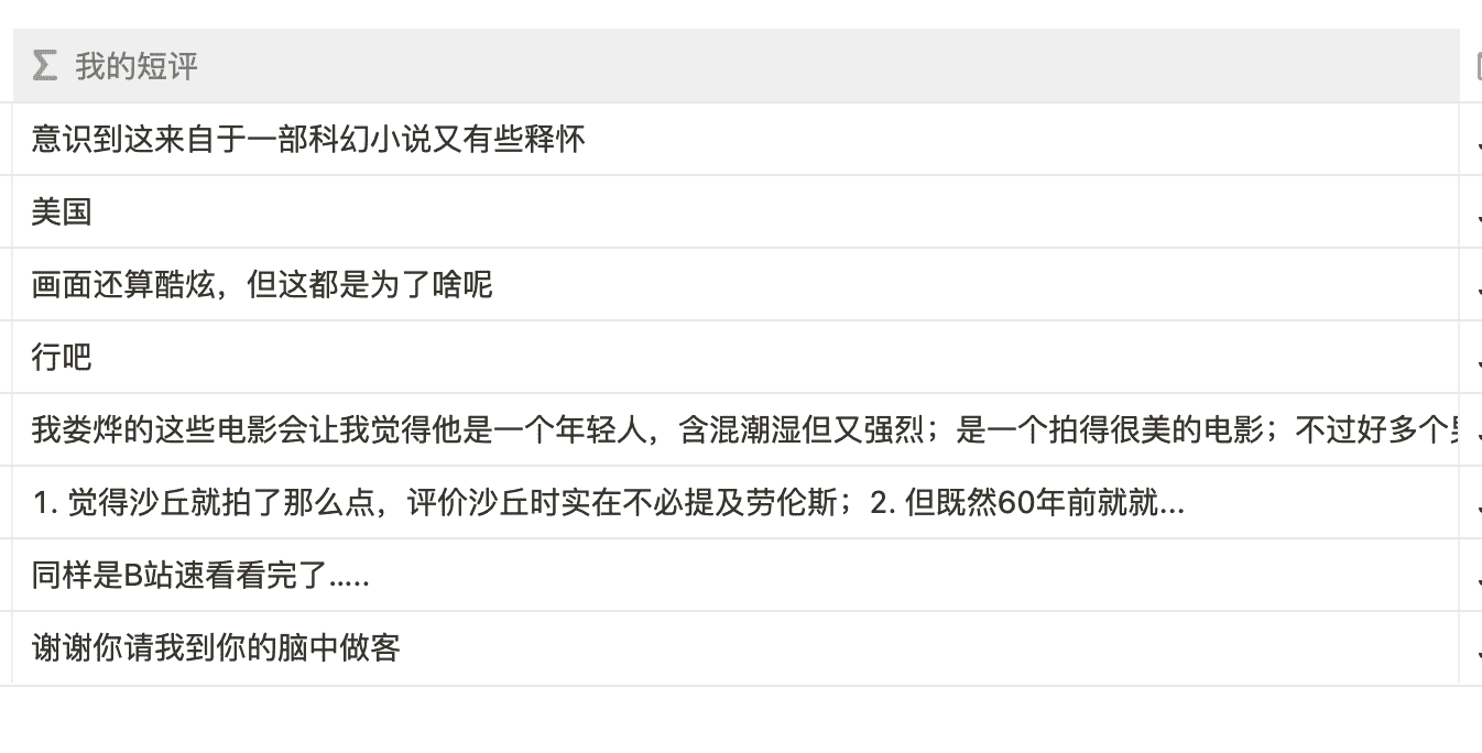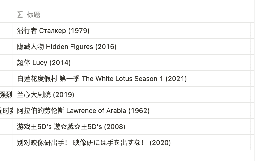 从豆瓣用插件导出,放到 Notion 中的 Page 长这样(以后我都叫它标记 Page),所以我们目前的目标就是为了让两者适配,也就是有着同样的格式