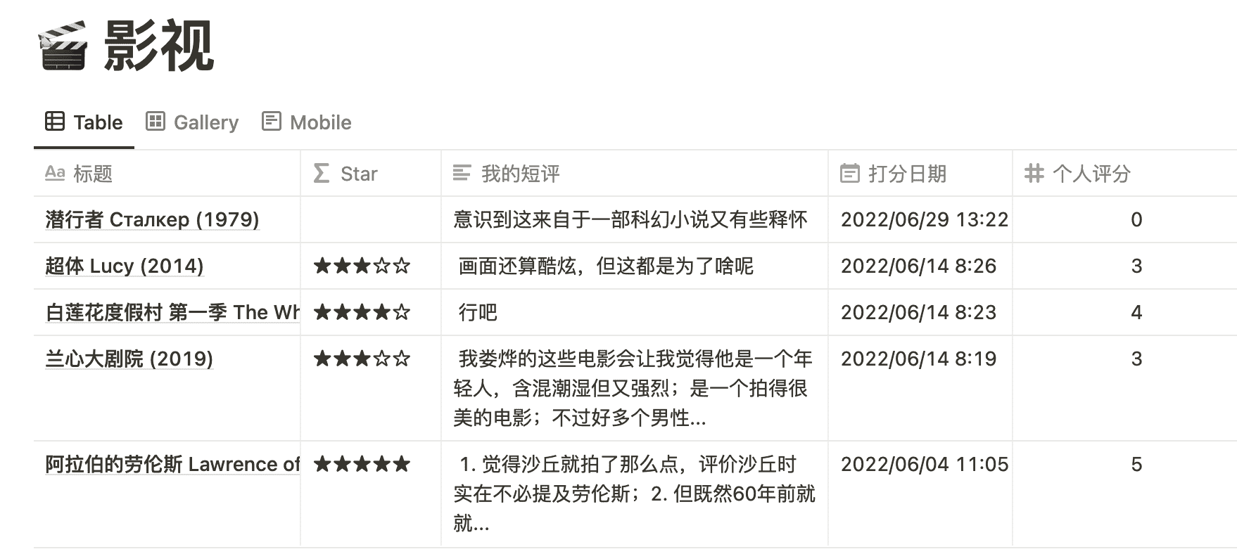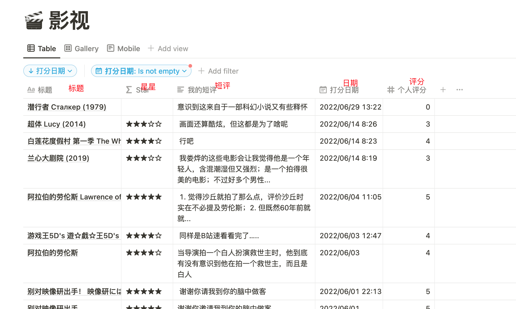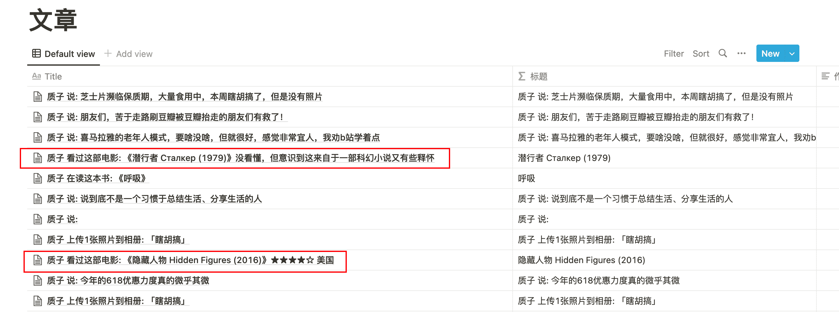 从豆瓣用插件导出,放到 Notion 中的 Page 长这样(以后我都叫它标记 Page),所以我们目前的目标就是为了让两者适配,也就是有着同样的格式