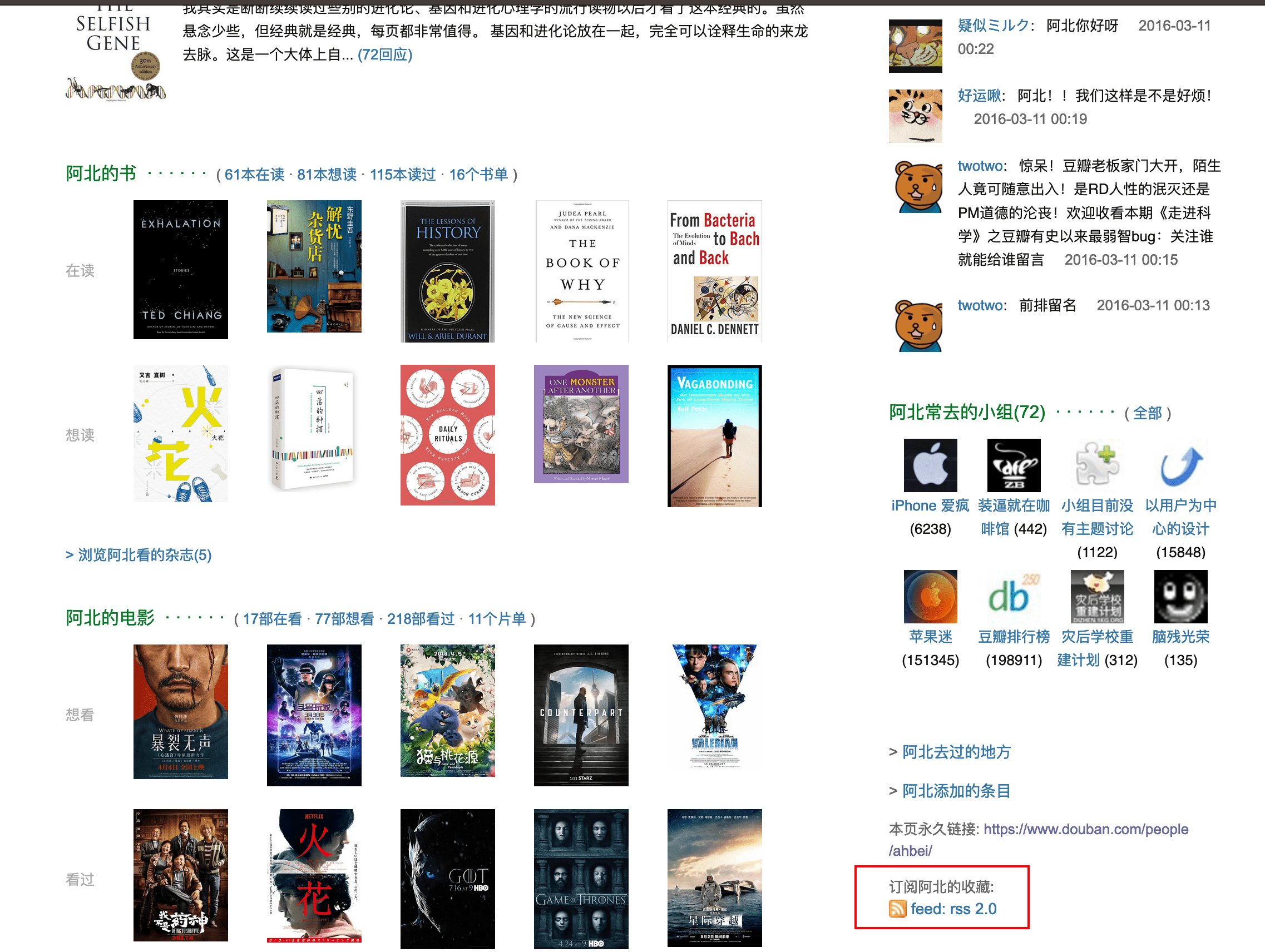 豆瓣官方的 RSS 地址,在页面的右下角可以获得