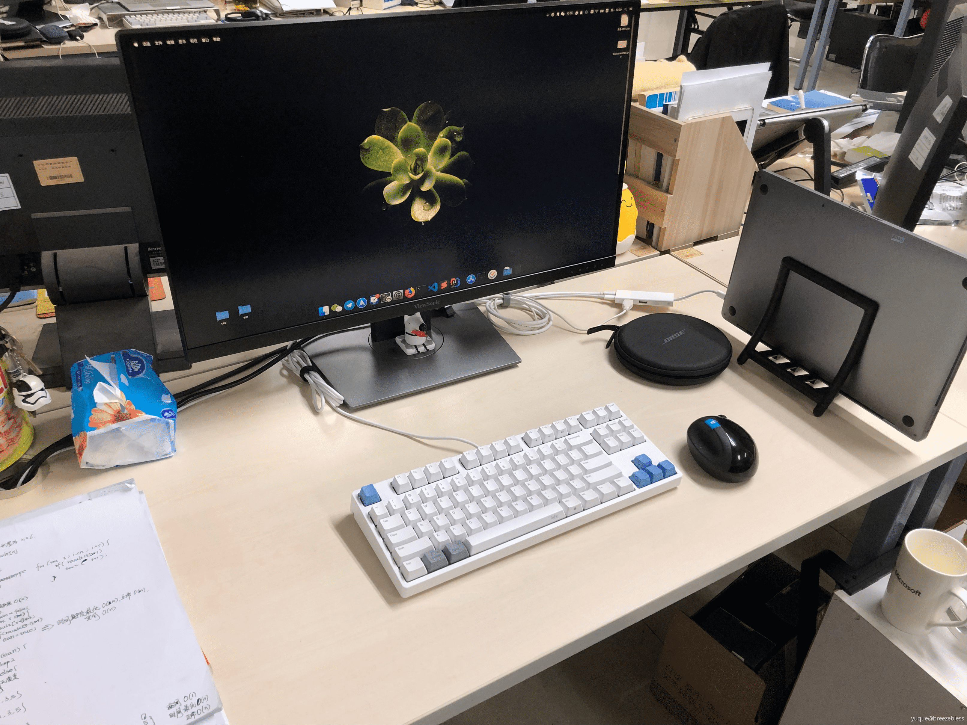 再加上我之前的机械键盘和无线鼠标,一个完美桌面就搭好了,效果是这样的啦🌟🌟🌟!!! 虽然有了这么齐全的设备之后天天还是摸鱼和网上冲浪,但花了钱的心情非常舒畅,每天都元气满满。